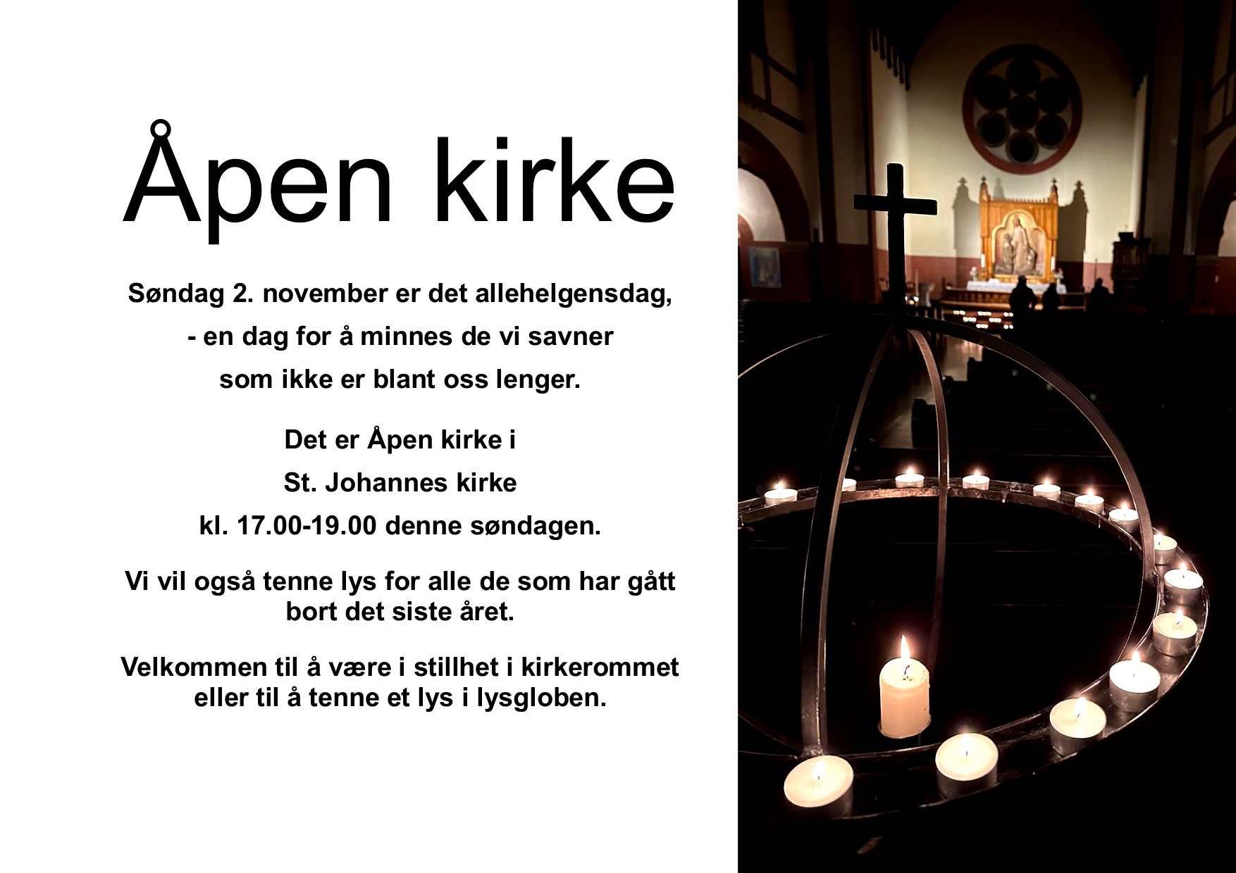 St. Johannes kirke er åpen søndag 2. november fra kl. 17.00 -19.00.