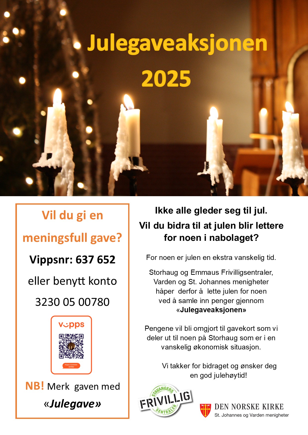 Storhaug og Emmaus Frivilligsentral, St. Johannes og Varden menigheter håper derfor å lette julen for noen ved å samle inn penger gjennom «Julegaveaksjonen»